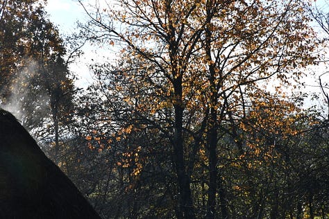 If I hadn’t stepped outside this morning to view the rising sun, I would have missed this steaming haystack in the October sunlight. Would I have lost anything by missing it? No, I wouldn’t. But did I gain something by experiencing it? Yes, indeed.